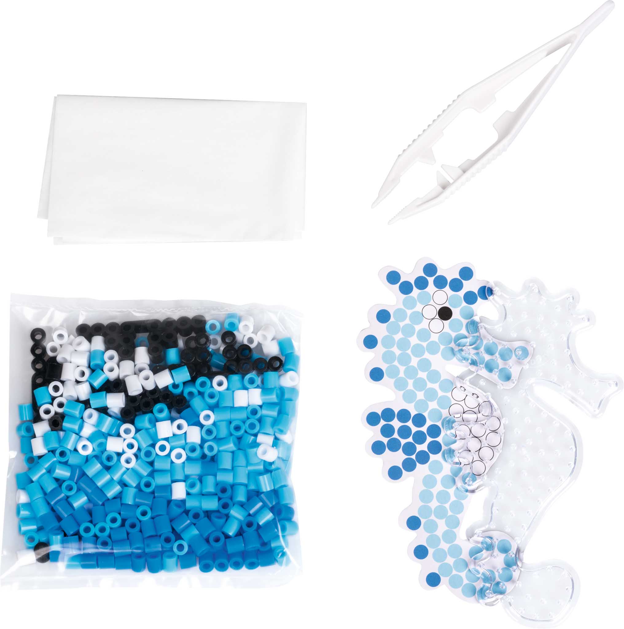 Inhalt: Bügelperlen, Vorlage, Steckplatte, Pinzette, Bügelpapier Material ausreichend für 2 Modelle Arbeiten mit Bügelperlen fördert nicht nur die Kreativität des Kindes, sondern auch die motorischen Fähigkeiten, sowie Konzentration und Geduld auf spielerische Weise. Motiv nach Vorlage auf die Platte aufstecken. Backpapier auflegen und bei mittlerer Stufe überbügeln bis Perlen verschmelzen. Nach dem Abkühlen Backpapier abziehen. Gegebenenfalls Prozess von anderer Seite wiederholen.