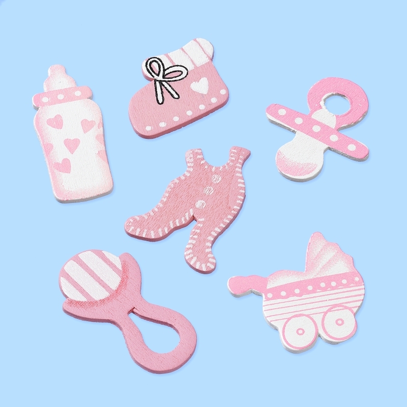 CREApop® Holzstreuteile Baby rosa sort., ca. 2,5 – 4 cm, Btl. à 12 St.