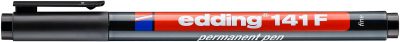 Permanent Pen edding 141 F. Folienschreiber mit Rundspitze zur dauerhaften Beschriftung von fast allen glatten Kunststoffoberflächen wie z.B. OHP-Folien. Auch zum Beschriften von Glas geeignet. Permanente, wasserfeste, lichtbeständige, geruchsarme Tinte auf Alkoholbasis. Wischfest, schnell trocknend, mit Spiritus korrigierbar, hohe Transparenz. Schwarze Kappe mit Kunststoffclip. Schaftfarbe: Schwarz. Strichstärke: 0,6 mm. Schreibfarbe: schwarz.