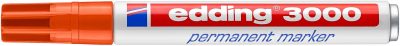 Permanentmarker edding 3000. Nachfüllbarer Marker zum Beschriften, Bemalen, Kennzeichnen von fast allen Materialien, auch Metall, Glas, Kunststoff. Permanente, geruchsarme Tinte ohne Zusatz von Toluol/Xylol, wisch- und wasserfest, lichtbeständig. Austauschbare Rundspitze. Aluminiumschaft. Umsteckbare Kappe in Schreibfarbe. Schaftfarbe: weiß . Strichstärke: ca. 1,5 – 3 mm.