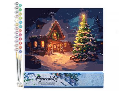 Figured Art – Malen nach Zahlen Schneebedeckte Weihnachtshütte, 40×50 cm