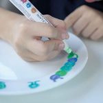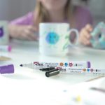 Brillante Porzellanmalstifte. Auf Wasserbasis, lichtecht, Rezeptur ist dermatologisch getestet und vegan. Ohne Schütteln und Pumpen. Mit großer unempfindlicher Faserspitze, Strichstärke ca. 2-4 mm. So geht’s: Nutz und Essbereich frei halten. Solange die Bemalung nicht eingebrannt ist, kann diese mit Wasser entfernt werden. Nach einer Trockenzeit von 4 Stunden in den kalten Backofen stellen und 90 Min. bei 160 °C fixieren. Im Backofen auskühlen und aushärten lassen. Bemalung ist danach spülmaschinengeeignet. 5 Porzellanmalstifte in Gelb, Kirschrot, Dunkelblau, Dunkelgrün, Schwarz