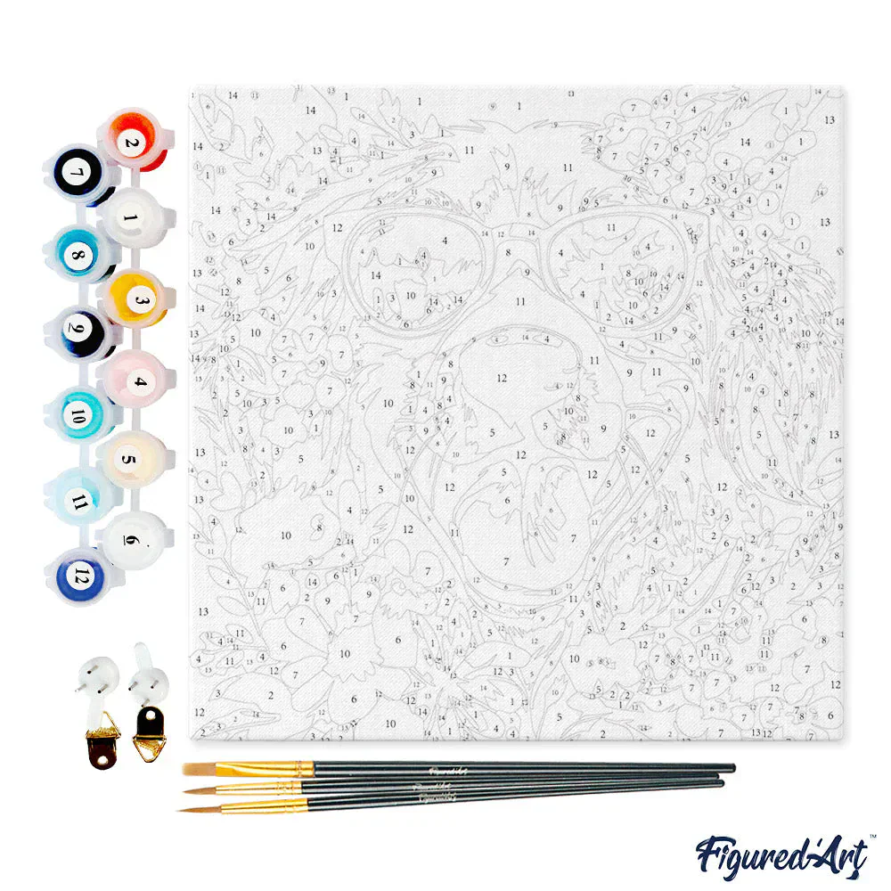 Dieses Malen nach Zahlen Set enthält alles Notwendige um Ihr eigenes Kunstwerk zu verwirklichen: 1 nummerierte Leinwand in 20 x 20 cm bereits gerahmt, 3 Nylon-Pinsel in verschiedenen Größen, 1 nummeriertes Farbset, 1 Papierausdruck Ihres Motives zur Veranschaulichung, 2 Schrauben + 2 Haken für die Befestigung an die Wand