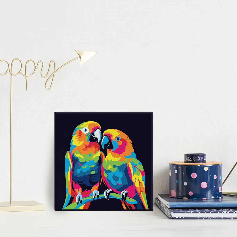 Dieses Malen nach Zahlen Set enthält alles Notwendige um Ihr eigenes Kunstwerk zu verwirklichen: 1 nummerierte Leinwand in 20 x 20 cm bereits gerahmt, 3 Nylon-Pinsel in verschiedenen Größen, 1 nummeriertes Farbset, 1 Papierausdruck Ihres Motives zur Veranschaulichung, 2 Schrauben + 2 Haken für die Befestigung an die Wand