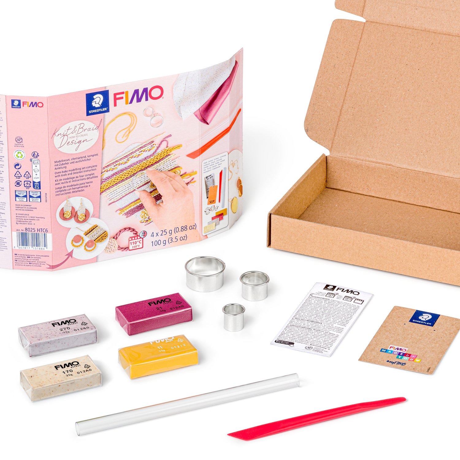 Staedtler FIMO Soft Modelliermasse Strick Design Set 4x25g – mit Werkzeug